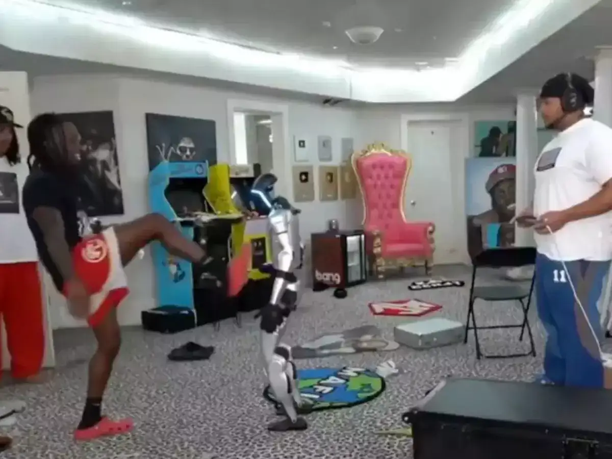 What starts as a simple demonstration of the robot’s abilities quickly turns into what many have described as “bullying”. The trio can be seen kicking, pushing, and taunting the robot as it stumbles and falls repeatedly. At one point, the robot attempts to walk away from the group but is blocked and shoved by Cenat. He can be heard making taunting comments like, “Where’s your mom at, boy?” before pushing the bot until it topples to the ground once more. The disturbing scene has sparked intense reactions from viewers, with some questioning the ethics of treating a machine in such a violent manner.